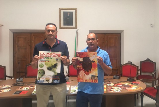 El alcalde de Felix Baldomero Martinez y el concejal de festejos Manuel Flores, han dado a conocer los carteles de presentación de La noche de las estrellas, y el de las fiestas de San Roque, diseñado por Javier Martinez Zafra.