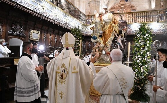 El primer edil participa en la bendición solemne de la imagen, obra de los imagineros murcianos Juan y Sebastián Martínez Cava, a cargo del obispo coadjutor, monseñor Antonio Gómez Cantero, en la Catedral.