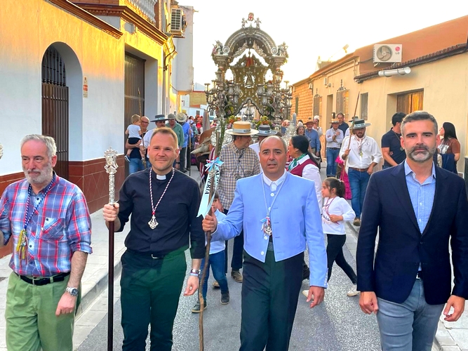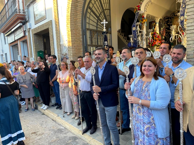 El consejero, junto al alcalde del municipio, Pedro Oropesa, y la delegada territorial de la Consejería en Sevilla, Inmaculada Gallardo, ha acompañado a estas hermandades hasta la capilla de la Casa Hermandad, donde ha realizado una ofrenda floral y ha destacado “la proyección de una romería como la del Rocío que llega a todos los puntos de Andalucía y de España”.