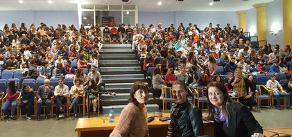 Más de un centenar de escolares se han dado cita en un evento que han presidido la diputada de Igualdad, Dolores Martínez; la cineasta, y la concejal de Igualdad de Rioja, Manuela Mañas. Una actividad que se enmarca en la programación que ha organizado la Diputación Provincial de Almería con motivo del 25N ‘Día Internacional contra la Violencia de Género’.
