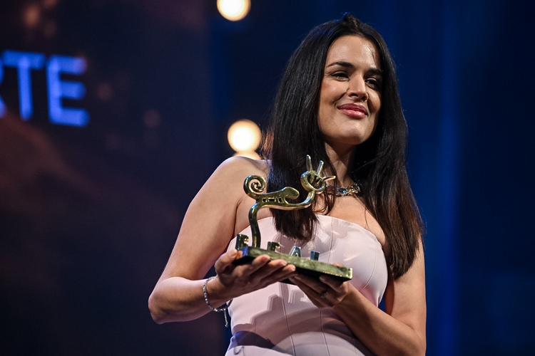 La actriz ha recibido el premio Almería Tierra de Cine de manos del presidente de la Diputación, Javier A. García, en una ceremonia con música, emoción y el brillo de los protagonistas de ‘La Boda’ y ‘Papeles’
