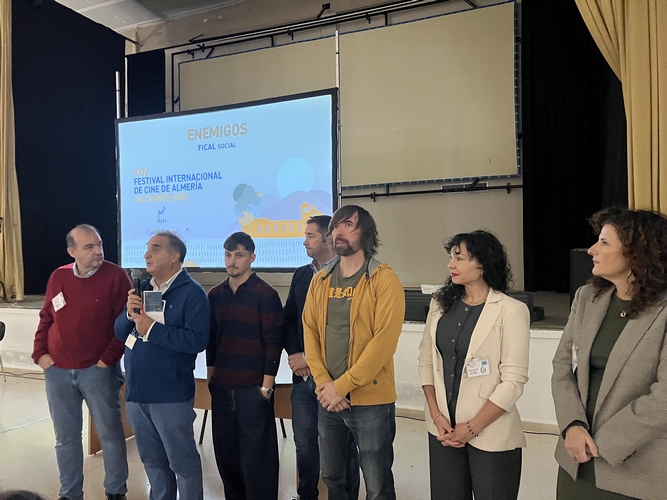 El Festival Internacional de Cine de Almería de Almería ha vuelto a demostrar hoy su compromiso con la dimensión social del cine con la proyección de la ópera prima ‘Enemigos’ en el Centro Penitenciario de Almería, en una sesión que ha culminado con un coloquio entre cerca de 200 internos e internas y el equipo de la película. Es una actividad tradicional dentro de la sección FICAL Social.