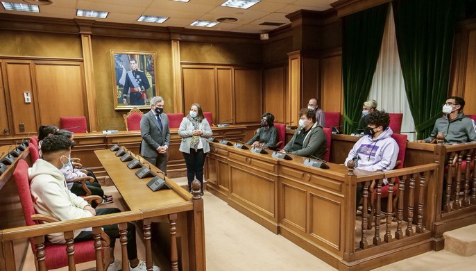 El alumnado de Segundo de Formación Profesional Básica y Segundo de Grado Medio en Informática ha sido recibido por el vicepresidente de Diputación, Ángel Escobar, y la diputada responsable del servicio provincial de telecomunicaciones, Concepción Pérez, así como los técnicos del Servicio de Informática de la Diputación.