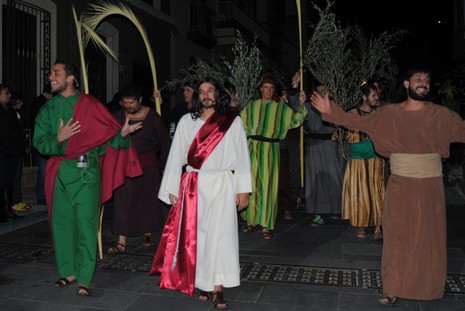 Uno tras otro fueron saliendo a escena, Jesucristo, la Virgen María, María Magdalena, el Ángel, los doce Apóstoles, Poncio Pilatos, Herodes, Barrabas, Caifás, Anás, José de Arimatea, Simón el Cirineo, judíos y romanos y el pueblo llano, todos ellos caracterizados y ataviados con trajes de época, para recrear este momento histórico de especial trascendencia y significado para todos los cristianos.