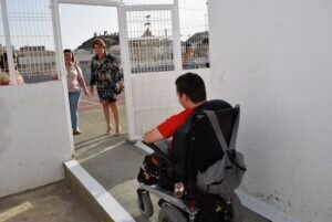 “Esta pequeña, pero importante actuación –ha señalado la alcaldesa, Lourdes Ramos Rodríguez–, va a permitir que jóvenes de nuestro pueblo, como Juan Ramón Rueda Almansa, que debido a una parálisis se ve obligado a ir en silla de ruedas, acceder en igualdad de condiciones que los demás niños a las instalaciones deportivas del pueblo”.