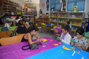 El colorido de la Feria llega a la Biblioteca Municipal “Adolfo Suárez” de Gádor. Y es que éste espacio cultural se trasforma en estos días previos a la celebración de la Feria y Fiestas de Gádor 2016 en un taller lúdico-educativo en el que niños y adultos del municipio crean sus propios abalorios de Feria.