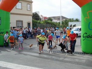 Los gadorenses han participado hoy con sus mascotas en la I Carrera de Cani-cros que se disputa en la Villa de Gádor, dentro de las actividades deportivas y culturales previas de Feria.