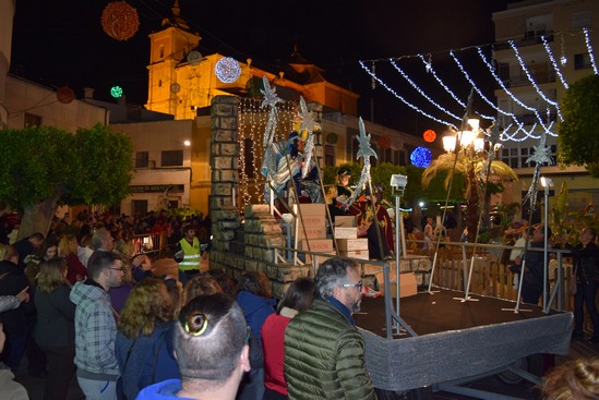 Una majestuosa cabalgata, compuesta cinco magníficas carrozas, encabezada por la gran Estrella de Oriente, que iluminaba el camino. Después la carrozas de los pajes y las tres carrozas reales con sus Majestades Melchor, Gaspar y Baltasar, cargadas de regalos y con los respectivos sequitos de pajes lanzando caramelos sin cesar. Intercalados entre las carrozas reales un pasacalles de personajes infantiles, la Charanga Los Revoltosos y un chiquitren navideño cargado a rebosar de niños cerrando el cortejo.