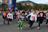 La carrera solidaria se ha desarrollado en la explanada del Recinto Ferial y se han establecido dos categorías. Los niños de infantil han realizado un circuito de obstáculos y, los del ciclo de primaria, una carrera bajo la atenta mirada de sus padres y familiares, que en todo momento les han animado y apoyado. Por cada vuelta que han dado al circuito los niños han recibido una marca para que sus familiares colaboren luego en la medida de sus posibilidades. La idea es que cuantas más vueltas se hagan, mas fondos se obtendrán para ayudar los niños etíopes a vivir.