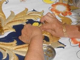GÁDOR.- Mujeres de la Villa trabajan en la confección de un manto procesional para la Virgen del Rosario