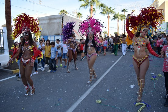 Intercalados en el cortejo el grupo de las esculturales y bellas bailarinas brasileñas de samba, que como es costumbre han desatado la locura a su paso con su simpatía y espectaculares movimientos de cadera y la Charanga “La Cuadrilla, que invitaba con su música a vivir intensamente la fiesta.