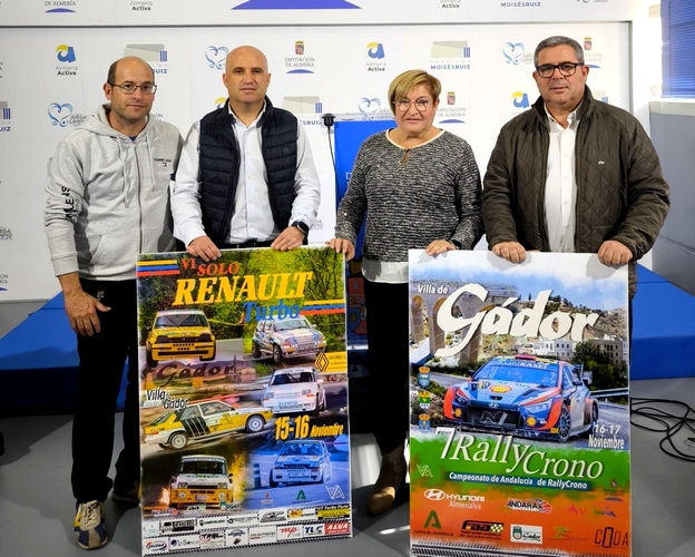 La Diputación de Almería ha presentado las dos pruebas que se van a realizar este fin de semana en el municipio de Gádor. En concreto se trata de la VI edición Solo Renault Turbo y la VII Rally Crono, desde el 15 al 17 de noviembre.