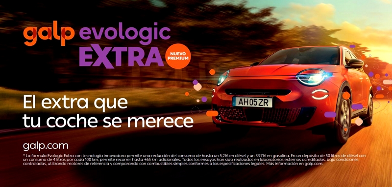 (*) La Fórmula Galp Evologic Extra con una nueva tecnología, permite reducir el consumo hasta un 5,2% en diésel y hasta un 3,97% en gasolina. En un depósito de 50L de diésel, con un consumo de 4 litros/100Km, puede recorrer hasta +65 km. Cada una de las pruebas se ha realizado en un laboratorio externo acreditado, en motores de referencia y en condiciones controladas, en comparación con combustibles simples de acuerdo con las especificaciones definidas en la legislación. Más información en galp.com