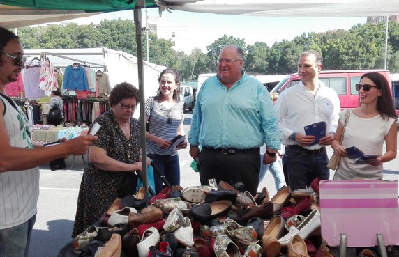 El candidato del Partido Popular de Almería al Senado Eugenio Gonzálvez ha manifestado este lunes que “cada vez que gobierna el PP se garantiza el empleo, baja el paro, hay estabilidad y mayor garantía de futuro para los españoles”, por eso ha pedido a los vecinos que esta mañana se han acercado al mercadillo de la Bola Azul en la capital, que el próximo día 26-J “voten al Partido Popular, porque nos estamos jugando mucho, nos estamos jugando el futuro de nuestras familias”.