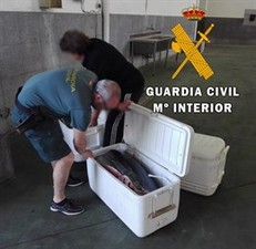 La Guardia Civil ha intervenido en el puerto de Carboneras (Almería) 269 kilos de atún rojo (Thunnus thynnus) pescado ilegalmente y ha levantado acta de infracción con la aprehensión de 17 cañas de pescar y 16 carretes usados para la pesca de fondo.