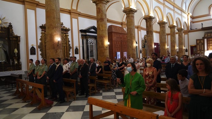 La Mayordomía de la Virgen del Pilar celebró este sábado 16 de julio en la Parroquia de la Anunciación una misa y acto de hermanamiento con el Puesto de la Guardia Civil de Berja, al que asistieron el coronel jefe de la Comandancia de la Guardia Civil de Almería, Jorge Montero Llácer; el capitán jefe accidental de la 3ª Compañía de la Guardia Civil de El Ejido, Juan Villanueva Moreno; el sargento comandante del Puesto de la Guardia Civil de Berja, José Antonio Bolívar Velasco; el alcalde de Berja, José Carlos Lupión, y varios miembros del equipo de Gobierno.