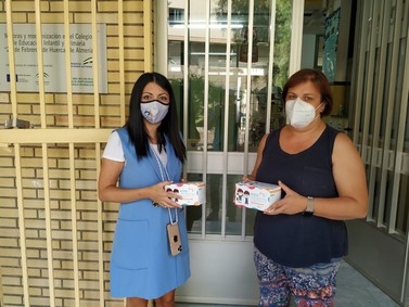 HUÉRCAL DE ALMERÍA.- El Ayuntamiento entrega 1.500 mascarillas infantiles y 100 lotes de gel hidroalcohólico en los centros escolares de cara al inicio del curso académico