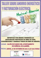 El Ayuntamiento de Huércal de Almería ha organizado un taller sobre ‘Ahorro energético y facturación eléctrica’ que se celebrará el próximo 27 de octubre en el Salón de Plenos del consistorio a las 11 horas. Este taller de carácter gratuito estará abierto a todas aquellas personas interesadas hasta completar el aforo.