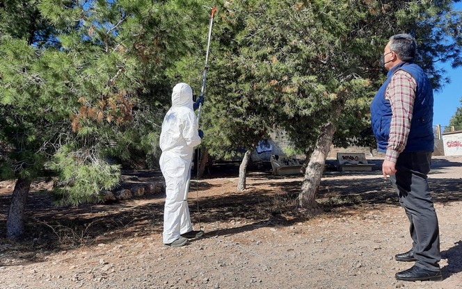 El Ayuntamiento de Huércal de Almería está realizando, como cada año, el tratamiento preventivo contra la procesionaria en los más de 3.000 pinos de titularidad municipal, para minimizar los daños que esta oruga produce tanto en seres humanos como en animales una vez que llegue la primavera.
