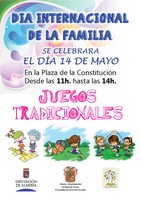 El Ayuntamiento de Huércal-Overa, en colaboración con la Diputación Provincial de Almería, celebra el Día Internacional de la Familia con una jornada de juegos tradicionales que se llevará a cabo el próximo 14 de mayo en la Plaza de La Constitución en horario de 11 a 14:00 horas. Una actividad incluida en el Programa provincial Juegos en Familia, con el que se refuerzan la psicomotricidad, habilidades sociales, y los conocimientos musicales entre otros aspectos con los que se lucha contra el sedentarismo y se favorece la relación entre las familias.
