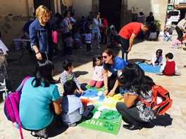 Padres, hijos y abuelos realizaron el circuito de juegos tradicionales almerienses como la ganga, la rayuela, el trompo, las tabas, las canicas o la comba y participaron en las actividades animadas con música.
