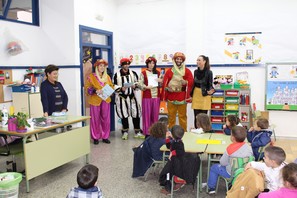 Los niños del Colegio Virgen del Río han recibido este viernes una visita muy especial, la de los pajes reales, visita que la próxima semana llegará a todos los colegios del termino municipal de Huércal-overa, unos momentos de ilusión que están compartiendo con ellos la concejal de Educación, Belén Martínez.