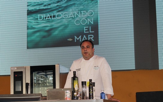 En Aponiente se reinventan los productos y se innova con ellos dando a sus comensales una nueva visión a través de productos del mar y eso es lo que hizo Ángel León en su ponencia, mostrar su diálogo con el mar. Una lección magistral que levantó una gran expectación ante un lleno total de la sala.