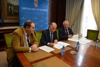 El presidente de la Diputación de Almería, Gabriel Amat y el director del Centro Asociado de Almería de la Universidad Nacional de Educación a Distancia, Trino Gómez, han firmado un convenio de colaboración para contribuir a la formación integral de los estudiantes de la UNED.