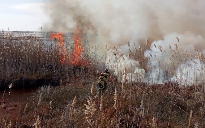 El incendio forestal declarado este pasado miércoles en el paraje natural de Puntas Entinas-Sabinar en Roquetas de Mar (Almería) ha calcinado 4,5 hectáreas de vegetación de ribera, en su mayor parte cañas y carrizo.