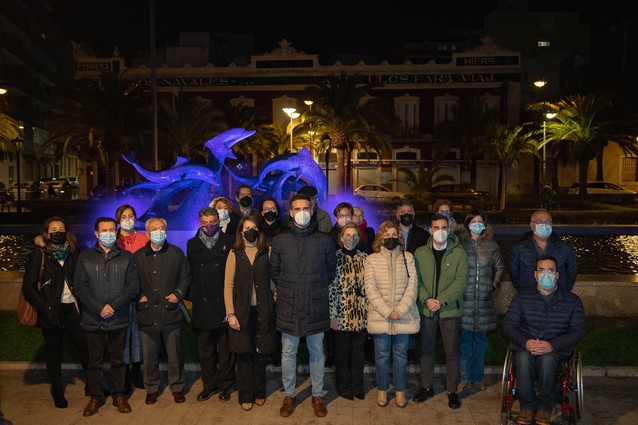 Almería unida por la igualdad. Así lo han visibilizado este lunes por la tarde los representantes de las diferentes instituciones, Ayuntamiento, Diputación, Junta de Andalucía, Subdelegación del Gobierno, Hospital Universitario Torrecárdenas y Universidad, además de diferentes asociaciones que conforman el Consejo Sectorial de la Mujer, que se han dado cita en la fuente de ‘Los Delfines’, en el Parque Nicolás Salmerón, para asistir a su iluminación en violeta, color que simboliza el Día de Internacional de la Mujer.
