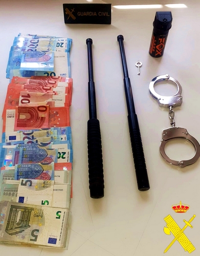 Al inspeccionar el vehículo, los agentes percibieron que del interior de las bolsas emanaba un fuerte olor a marihuana, lo que motivó una revisión exhaustiva. Al inspeccionarlas se constató que las 12 bolsas contenían un total de 65 kilogramos de cogollos de marihuana empaquetadas al vacío, con las inscripciones “PRO” y “BOMBA” en su exterior. Además, se incautaron 2.700 euros en efectivo, distribuidos en billetes de 20, 10 y 5 euros (denominaciones comúnmente utilizadas para el cambio en la venta de sustancias estupefacientes), un spray de defensa, además de unos grilletes con llave y dos defensas extensibles, estos últimos considerados objetos de uso prohibido para particulares.