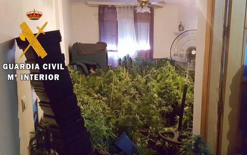 La Guardia Civil ha desmantelado un cultivo de interior con 650 plantas de marihuana que fue descubierta mientras que empleados de una entidad bancaria realizaban un desahucio en un bloque de viviendas de Roquetas de Mar (Almería).