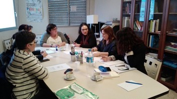 La coordinadora provincial de Izquierda Unida en Almería, Rosalía Martín y la coordinadora provincial de áreas, Belén Navarro, además trabajadora social, han mantenido un encuentro con parte de la Junta de Gobierno del Colegio oficial de Trabajo Social en Almería, presidido por Encarna Peláez.
