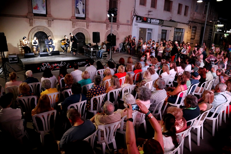 Plazeando’ ofrece cada edición, y van diez, bellas estampas del arte del flamenco integrado en la calle, en plazas de la ciudad. Es uno de los grandes pilares de su éxito y, cómo no, también el talento de artistas almerienses que cada año tienen así la oportunidad de mostrar su arte a un público siempre agradecido y efusivo. Anoche tuvo lugar en la plaza Pablo Cazard y con la bailaora Jennifer Ruiz la primera de las tres citas de este año de este ciclo ‘Plazeando’ que cuenta como siempre con la coordinación artística de Jesús Fernández y que se incluye dentro de la programación del 57º Festival de Flamenco y Danza, organizado por el Área de Cultura, Tradiciones y Fiestas Mayores del Ayuntamiento de Almería.