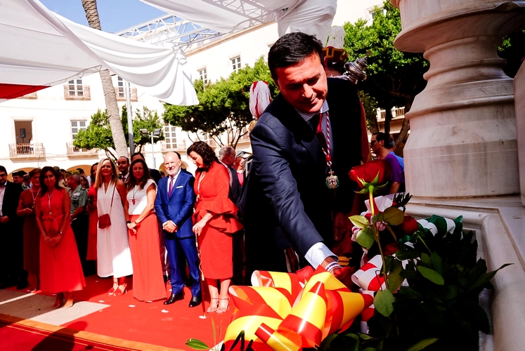 Tras la ceremonia institucional, se ha procedido al acto popular, depositando coronas de flores a los pies del monumento, en la Plaza de la Constitución, acompañado de los himnos de Almería, Andalucía y España por parte de la Banda de Música Municipal.