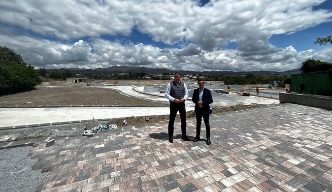 El delegado territorial de Turismo, Cultura y Deporte, José Ángel Vélez, ha realizado una visita técnica a las obras del complejo deportivo que se está ejecutando en el municipio de Tíjola. Se trata de la construcción de un campo de fútbol de césped artificial, vestuarios, urbanización, así como pistas deportivas. Una visita que ha realizado junto al alcalde de Tíjola, José Juan Martínez, quien ha destacado la importancia de esta obra para los vecinos del municipio, “ya que les permitirá la práctica de distintas disciplinas deportivas”.