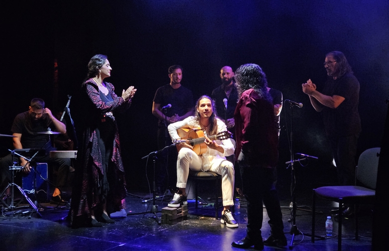 Por bulerías brillaron Kiki Cortiñas y Mari Ángeles, con buenas armonías y luciendo en sus distintas tesituras. Un Cortiñas que también lidió con un martinete donde más se notó el aditivo electrónico con un bombo contundente y también en los fandangos finales, después de recorrer también, con José a los mandos y con una muy emocionada Mari Ángeles, terrenos de tangos y rumbas a lo largo del concierto muy aplaudido desde el patio de butacas.