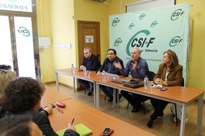 El presidente de CSIF Andalucía, José Luis Heredia, visitó este miércoles la sede de la Central Sindical en Almería para analizar la campaña electoral en la que se encuentra inmerso el sindicato, así como para felicitar a los delegados sindicales que la forman por los recientes buenos resultados obtenidos en las últimas elecciones del Sector de Sanidad y de Enseñanza. Como se recordará, CSIF Andalucía amplió la diferencia con el segundo sindicato más votado en los comicios en la Junta de Personal Docente no universitaria, a pesar de la irrupción de dos nuevos sindicatos corporativos; buenos resultados que también consiguió poco después el Sector de Sanidad, ganando por primera vez las elecciones sindicales del Servicio Andaluz de Salud en el Complejo Hospitalario de Torrecárdenas con una diferencia de más de un centenar de votos de diferencia.