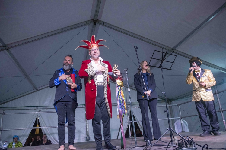 Uno de los momentos más conmovedores de la noche fue el homenaje a David Pérez Robles, componente de la chirigota del Soto, fallecido recientemente mientras actuaba. José Luis Jaén subrayó que el carnaval es “risa, pero también hermandad”, y reivindicó la dignidad del recuerdo para quienes “se quedan vivos en febrero”.