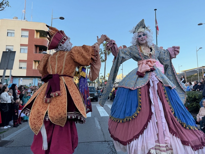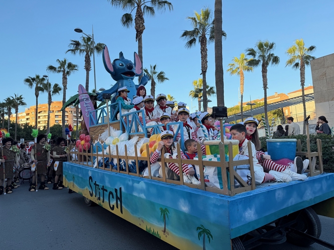 Los almerienses se han lanzado a la calle para disfrutar, en familia, disfrazados, especialmente los más pequeños, que han contemplado y compartido los cánticos con los participantes en la cabalgata, en las carrozas y en las coreografías.