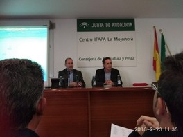 El delegado territorial de Agricultura, Pesca y Desarrollo Rural de la Junta de Andalucía, José Manuel Ortiz, ha inaugurado la jornada técnica “Rafia biodegradable como parte de la gestión integrada de residuos”, celebrada en el centro IFAPA de La Mojonera.