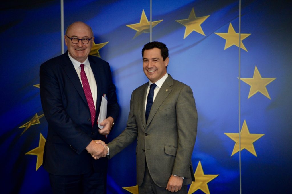 Moreno, por último, ha subrayado que en su primera jornada en Bruselas como presidente del Gobierno de Andalucía se ha dado “un salto en interlocución”, abriendo nuevos canales con sectores y actores principales, como el Negociador Jefe de la Unión Europea para el Brexit, Michel Barnier, o el comisario de Agricultura y Desarrollo Rural, Phil Hogan, que será el próximo comisario de Comercio. “Vamos a tener una presencia permanente y activa en Bruselas ante las instituciones europeas. Andalucía y el Gobierno andaluz tienen un marcadísimo carácter europeísta. Nosotros creemos en las instituciones europeas y en Europa”, ha concluido.