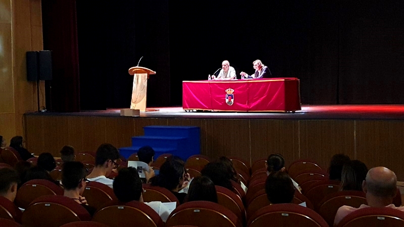 El viernes con alumnos de los IES Aguadulce, Carlos III, Mar Mediterráneo y El Parador explicó el poema “De amicitia” (al que le ha puesto música el cantante Loquillo) y que trabajaron previamente el alumnado de dichos centros para elaborar sus poemas.