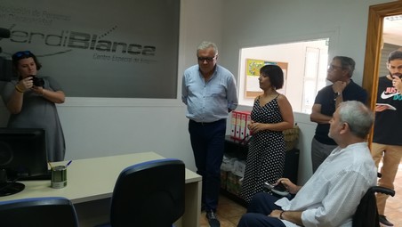 El delegado territorial de Empleo, Formación, Trabajo Autónomo, Economía, Conocimiento, Empresas y Universidad, Emilio Ortiz, y el presidente de la Asociación de Personas con Discapacidad Verdiblanca, Antonio Sánchez de Amo, han visitado este viernes una de las tres nuevas unidades Andalucía Orienta, el servicio de orientación laboral de la Junta de Andalucía, que gestiona esta entidad social, concretamente la que se ubica en la calle Barranquillo del barrio de La Chanca.