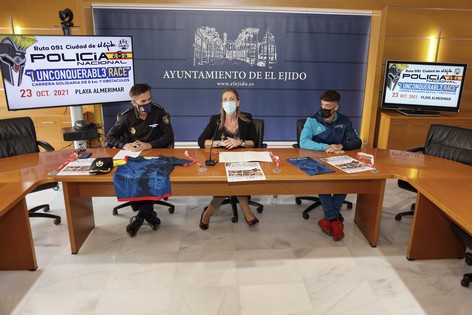 La Sala de Juntas del Ayuntamiento de El Ejido ha acogido la presentación de la primera edición de la UNCONQUERABL3 RACE, una prueba solidaria organizada por la Comisaría de la Policía Nacional en El Ejido y Lobero Fit, que cuenta con la colaboración del Ayuntamiento de El Ejido, a través del Instituto Municipal de Deportes.