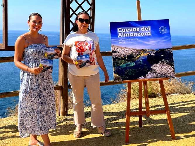 La teniente alcalde de Cuevas del Almanzora, Miriam Quintana, y la edil de turismo, Juana Haro, han dado a conocer este mañana, en el Mirador de la Cala del Peñón Cortao, la agenda Smartverano 2024, que regresa un año más para ser protagonista de la época estival.