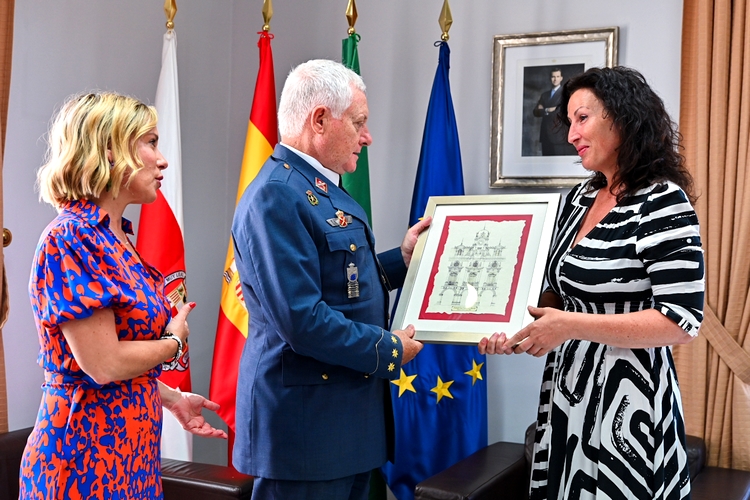 La recepción ha concluido con la entrega, por parte de la alcaldesa al subdelegado de Defensa, de un cuadro de la fachada de la Casa Consistorial, obra del arquitecto Trinidad Cuartara.