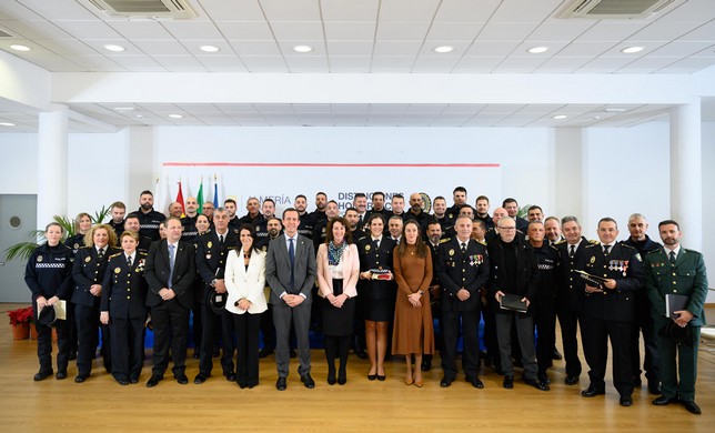 En esta ocasión, la Policía Local de Almería ha entregado cinco distinciones a personas y entidades externas por su profesionalidad, dedicación, experiencia colaboración” con el Cuerpo. Se trata del inspector jefe de Policía Judicial de la Policía Nacional, Juan Francisco López; el agente de la Unidad Operativa de Vigilancia Aduanera, Ángel Padilla; el teniente de Intervención de Armas de la Guardia Civil, Alejandro Manuel Gómez; el cantante y tenor Juan Francisco Navarro; y el CEO del Grupo Nexa y administrador de Ego Sport Center, Juan Carrillo.
