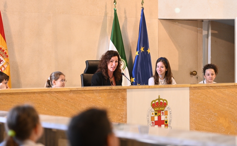 María del Mar Vázquez, acompañada por la concejala de Juventud, recibe en el Salón de Plenos a estudiantes de 3º y 6º de Primaria, que han mostrado interés por numerosos aspectos de actualidad de la ciudad