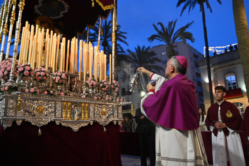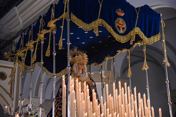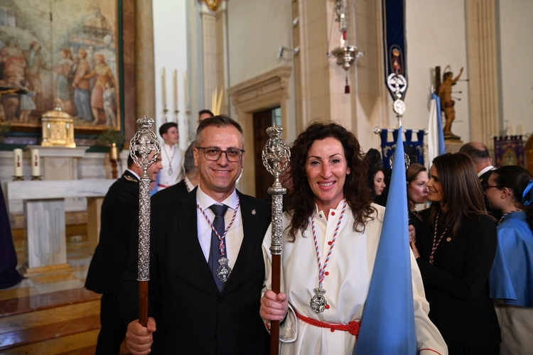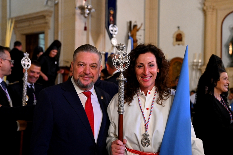 Ya en la calle, la alcaldesa ha realizado la primera levantá del paso de Nuestra Señora del Primer Dolor “para que lleve amor y esperanza a cualquier rincón donde haya alguien sufriendo, donde haya una guerra, y que nuestra Madre cuide de ellos igual que cuida de todos nosotros”.